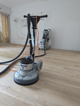 Remise en état du parquet de la maison pour le salon, la cuisine ,le couloir et les toilettes après une fuite d'eau.
